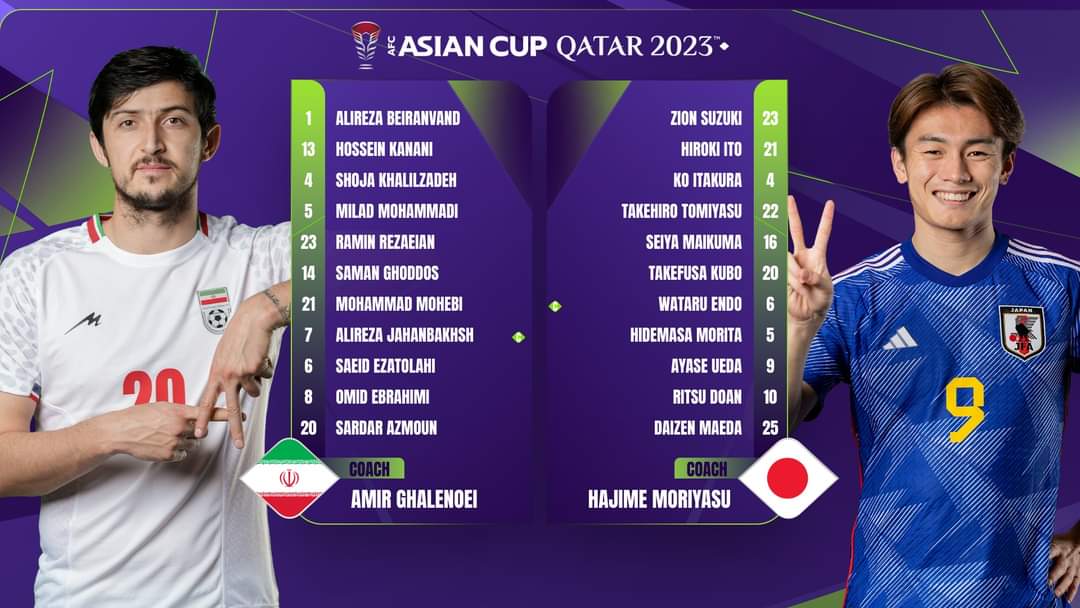 أعلن المنتخبان الإيراني والياباني تشكيلتهما النهائية لخوض مباراة ربع النهائي في كأس آسيا.