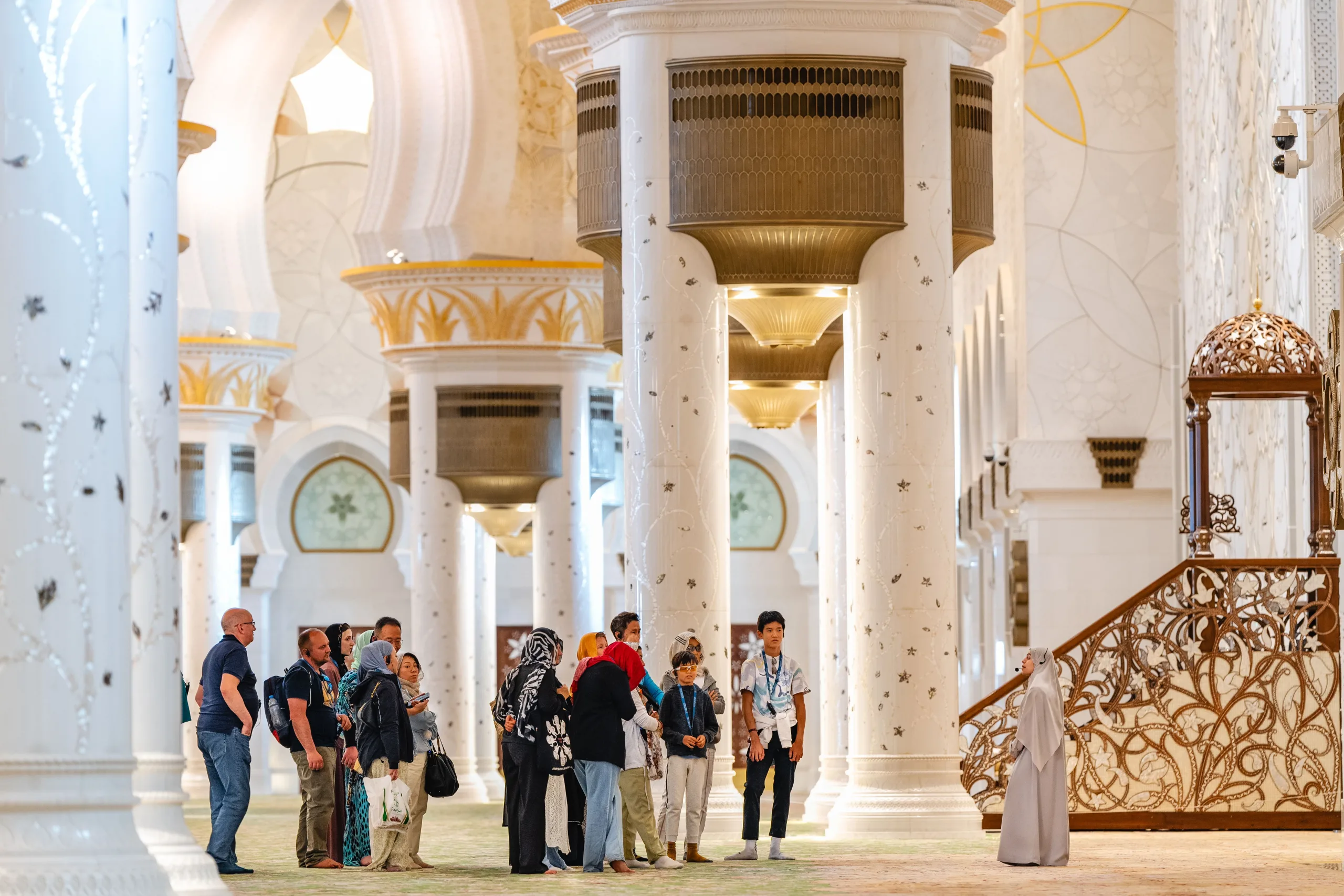 وبحسب “وام”، خلال عام 2023 تابع المركز دوره لتأكيد مكانة الجامع كوجهة ثقافية سياحية عالمية، حيث حقق الجامع زيادة لافتة في إجمالي مرتاديه خلال عام 2023م، بنسبة 70% مقارنة بعام 2022، حيث بلغ عدد مرتادي الجامع 5,501,420 مرتاداً، منهم 1,409,947 مصليًا، أدى 619, 664 منهم الصلوات اليومية، وأدى 310,609 شعائر صلاة الجمعة، وبلغ عدد مؤدي شعائر شهر رمضان والعيدين، 434,719 مصليًا، أما إجمالي زوار الجامع فقد بلغ4,033,552 زائرًا، واستخدم 57,921 مستخدماً الممشى الرياضي للجامع، وبلغت نسبة زائري الجامع من الأفراد 74% من إجمالي الزوار، وذلك بواقع 3,000,880 زائرًا، أما الزوار ضمن الوفود والمجموعات فقد بلغت نسبتهم 26% من إجمالي زوار الجامع، بواقع 1,032,672 زائرًا، حيث مثلت الوفود الرسمية عددًا من المؤسسات الحكومية، والمؤسسات التعليمية، والسفارات، وجهات القطاع الخاص، والفنادق، وبلغ عدد أفرادها 20,172 زائرًا للجامع ضمن 1,272 حجزًا، بينها 330 وفدًا رفيع المستوى، تضمنت 14 رئيس دولة، و3 نواب لرؤساء دول، 10 رؤساء برلمانات و8 رؤساء وزراء، ونائبي رؤساء وزراء، و6 حكام ولايات، ونائبي حكام ولايات ومناطق، و3 بين شيوخ وأمراء، و73 وزيرًا، و14 نائب وزراء، و39 سفيرًا وقنصلاً، و74 ضيفًا من القطاع العسكري، و12 ممثلًا للطوائف الدينية، و64 زيارة لوفود من جهات مختلفة. وبلغ عدد أفراد وفود الشركات السياحية 1,012,500 زائرٍ، ضمن 54,555 حجزًا، حيث اطلعت جميع الوفود على رسالة الجامع الداعية للتسامح والتواصل الحضاري، وعلى جماليات عمارته الإسلامية الفريدة، وما يقدم لمرتاديه من تجارب وخدمات تثري زياراتهم، وهي بيانات تعكس في مجملها ارتفاعًا لافتًا في أعداد مرتادي الجامع من مختلف أنحاء العالم وثقافاته، في حين شكلت الفئة العمرية من 25 إلى 35 عامًا، النسبة الأعلى من زوار الجامع من مختلف البلدان، فقد بلغت نسبة الزوار من هذه الفئة34 %.