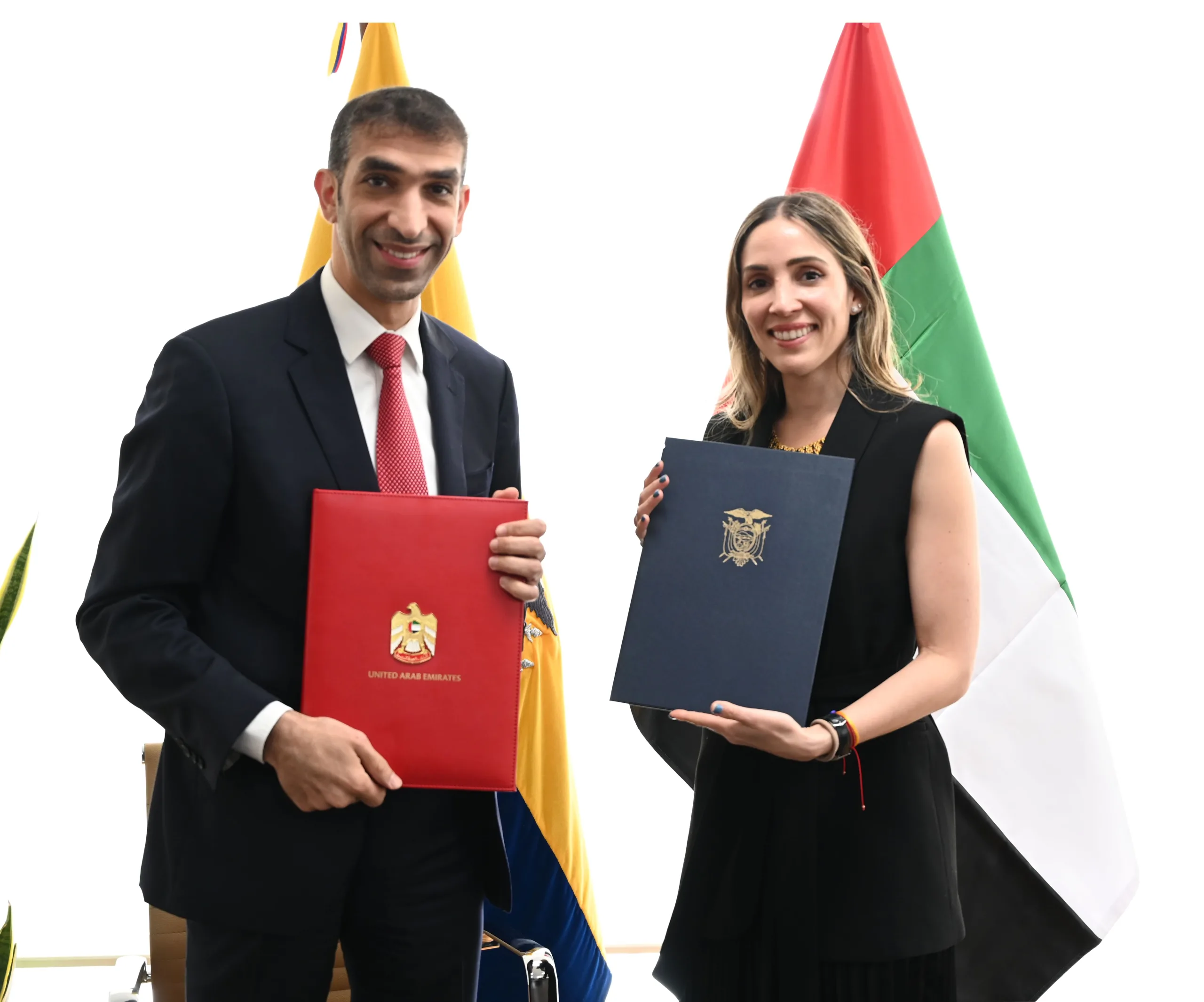 وقع معالي الدكتور ثاني بن أحمد الزيودي وزير دولة للتجارة الخارجية، ومعالي سونسوليس غارسيا وزيرة الإنتاج والتجارة الخارجية والاستثمار والثروة السمكية في الإكوادور، اليوم إعلاناً مشتركاً خلال زيارة معاليه الرسمية إلى العاصمة كيتو، يعرب البلدان الصديقان فيه عن نيتهما بدء المفاوضات نحو اتفاقية شراكة اقتصادية شاملة بين الإمارات والإكوادور، وذلك في إطار زيارة وفد دولة الإمارات إلى عدد من دول أمريكا اللاتينية.