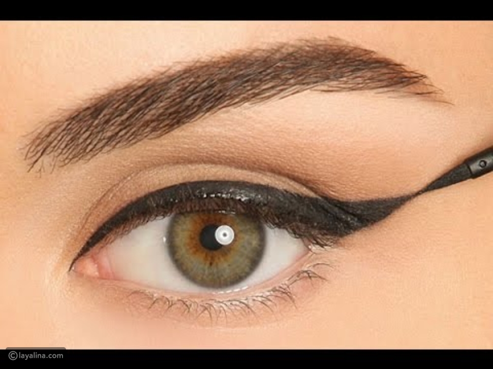 عيون القطة: ابدئي برسم خط رفيع من الأيلاينر على طول خط الرموش العليا، مع سحبه للخارج قليلاً عند الزاوية الخارجية للعين.