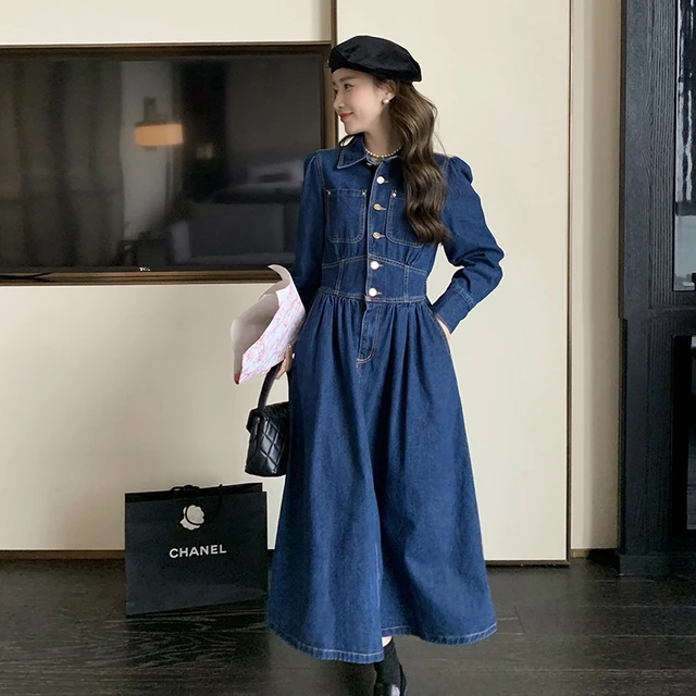 - الأزرق الداكن هو اللون الكلاسيكي لفستان الدنيم، ويناسب جميع المناسبات.
