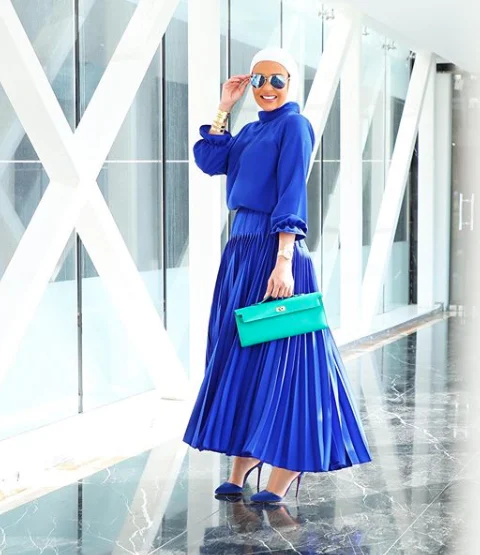 تنسيقات ساحرة للون الأزرق تُضفي أناقة على إطلالات المحجبات
