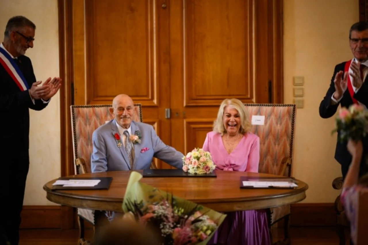 تزوج الجندي الأمريكي المتقاعد هارولد تيرينس، البالغ من العمر 100 عام، من خطيبته الفرنسية جين سويرلين، البالغة من العمر 96 عامًا، في حفل عُقد بالقرب من شواطئ نورماندي.