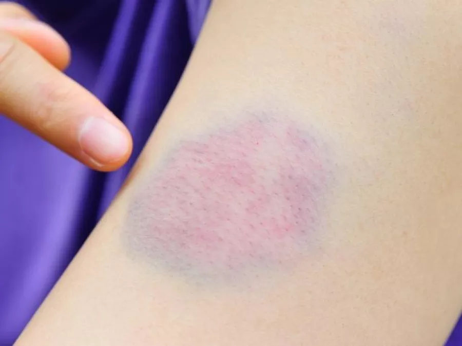 – البقع الزرقاء الناتجة عن كدمات عادة ما تكون محدودة في الحجم وتختفي بعد بضعة أيام.