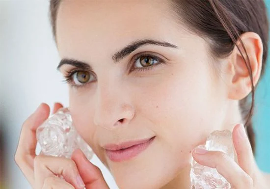 مرري مكعب الثلج على وجهك: حركي مكعب الثلج الملفوف على وجهك بحركات دائرية لطيفة لمدة 2-3 دقائق.