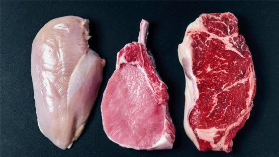 في غضون ذلك، تحتوي لحوم الدجاج على تركيز أعلى من الأحماض الدهنية المتعددة غير المشبعة، لكن مع تركيز أقل من الأحماض الدهنية المشبعة، أما لحم البقر ففيه كمية أكبر من الأحماض الدهنية الأحادية غير المشبعة.