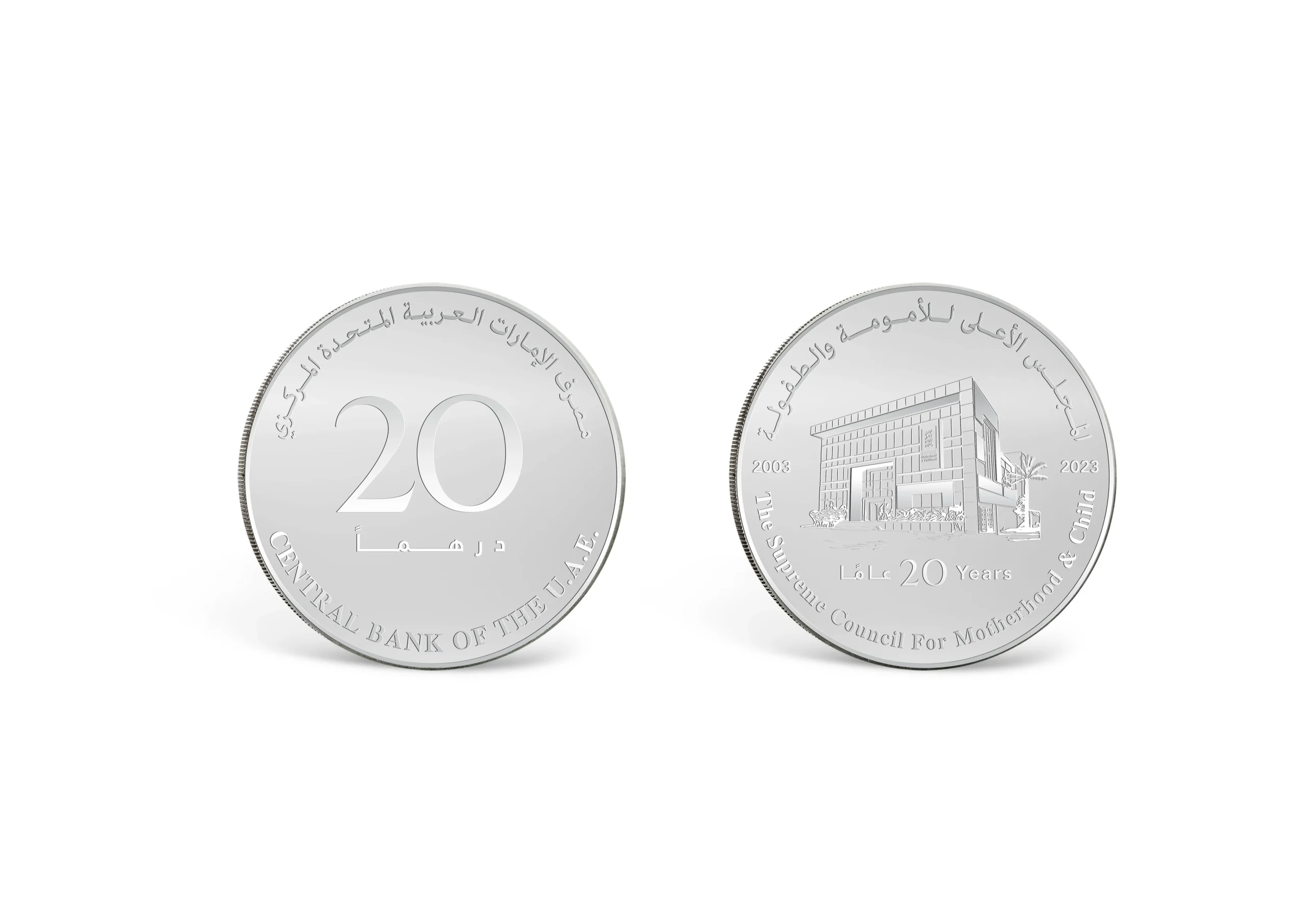 أصدر مصرف الإمارات العربية المتحدة المركزي، بالتعاون مع المجلس الأعلى للأمومة والطفولة، مسكوكة تذكارية من الفضة بمناسبة مرور 20 عاماً على تأسيس المجلس، بهدف تسليط الضوء على الإنجازات الكبيرة التي حققها المجلس منذ تأسيسه عام 2003 على المستويات كافة.