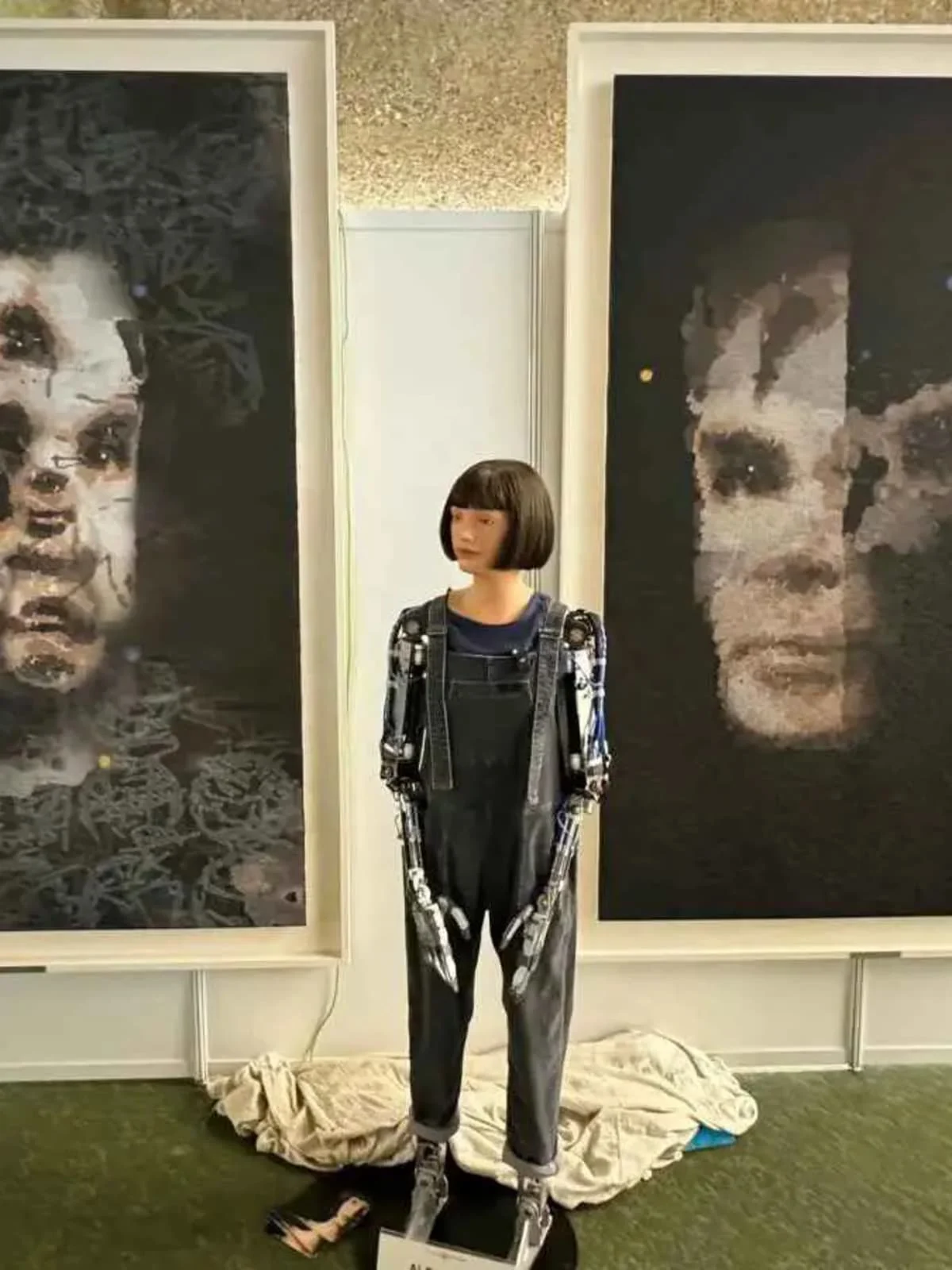 وتم برمجة الرجل الآلي عايدة، والتي ترتدي زي امرأة، من قبل مالك المعرض الفني السابق أيدان ميلر.