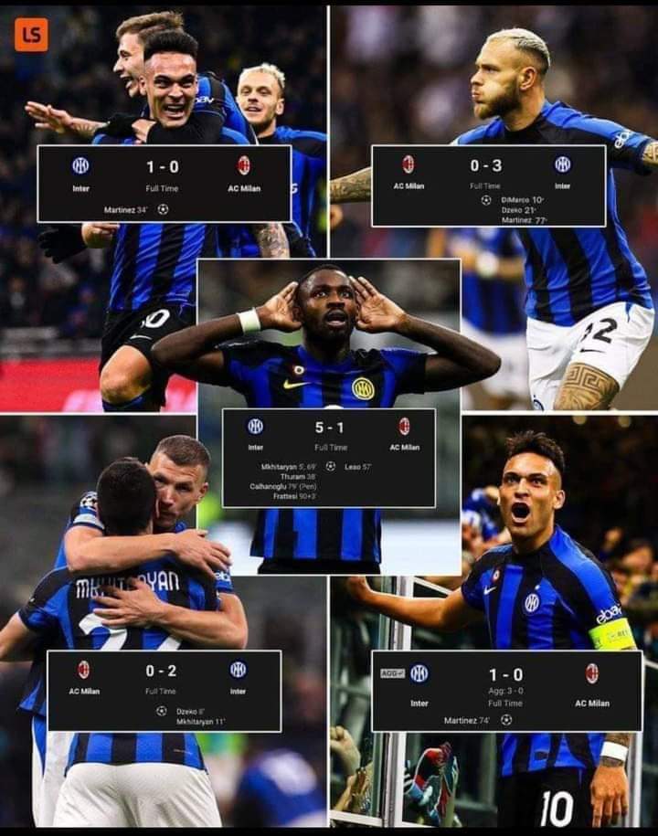 ولم يسمح النيراتزوري بأي فرصة لميلان وجماهيره للتنفس أو الفرحة بأي شيء، حيث سيطر تماما على لقاءات الفريقين.