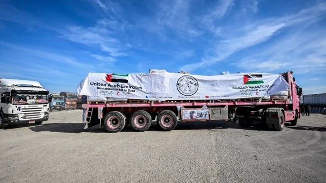 عاجل : قافلة مساعدات إنسانية إماراتية و10 سيارات إسعاف تدخل إلى غزة