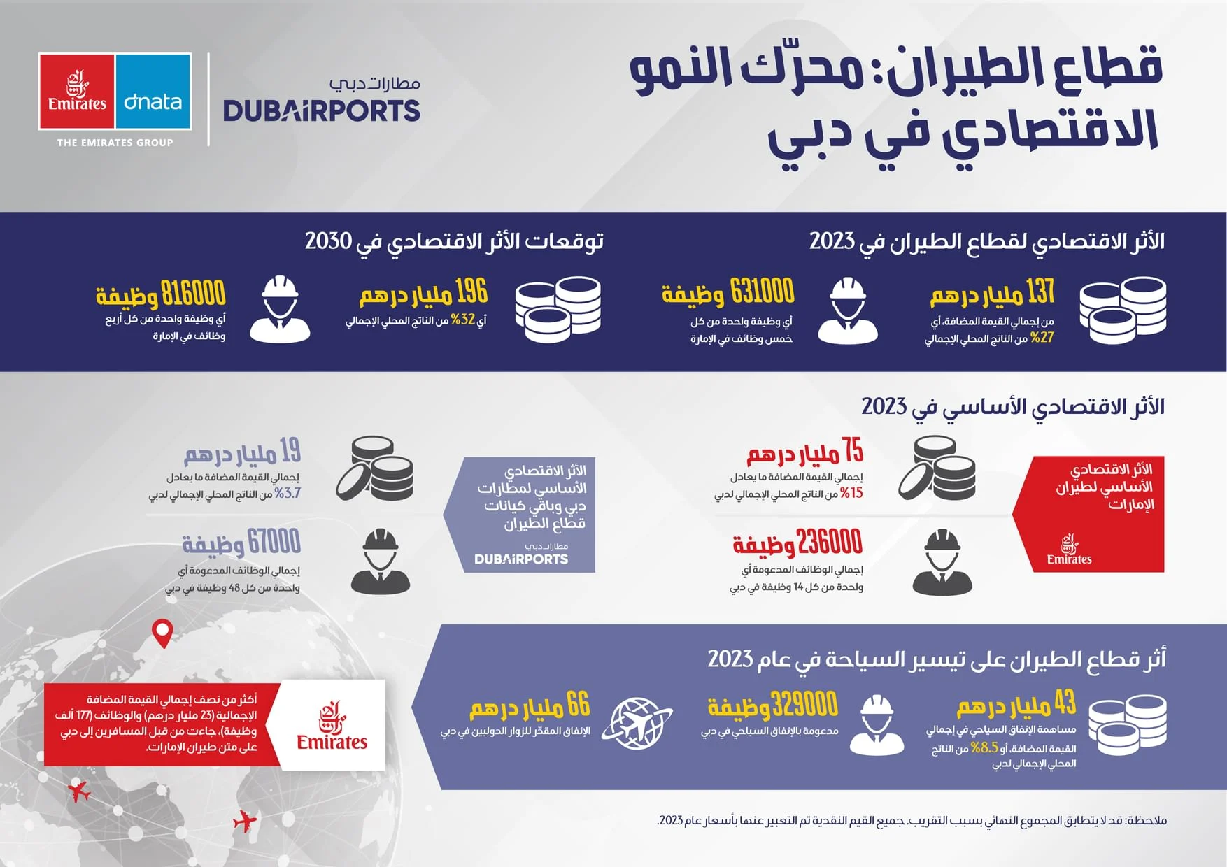 137 مليار درهم مساهمة قطاع الطيران في اقتصاد دبي خلال 2023