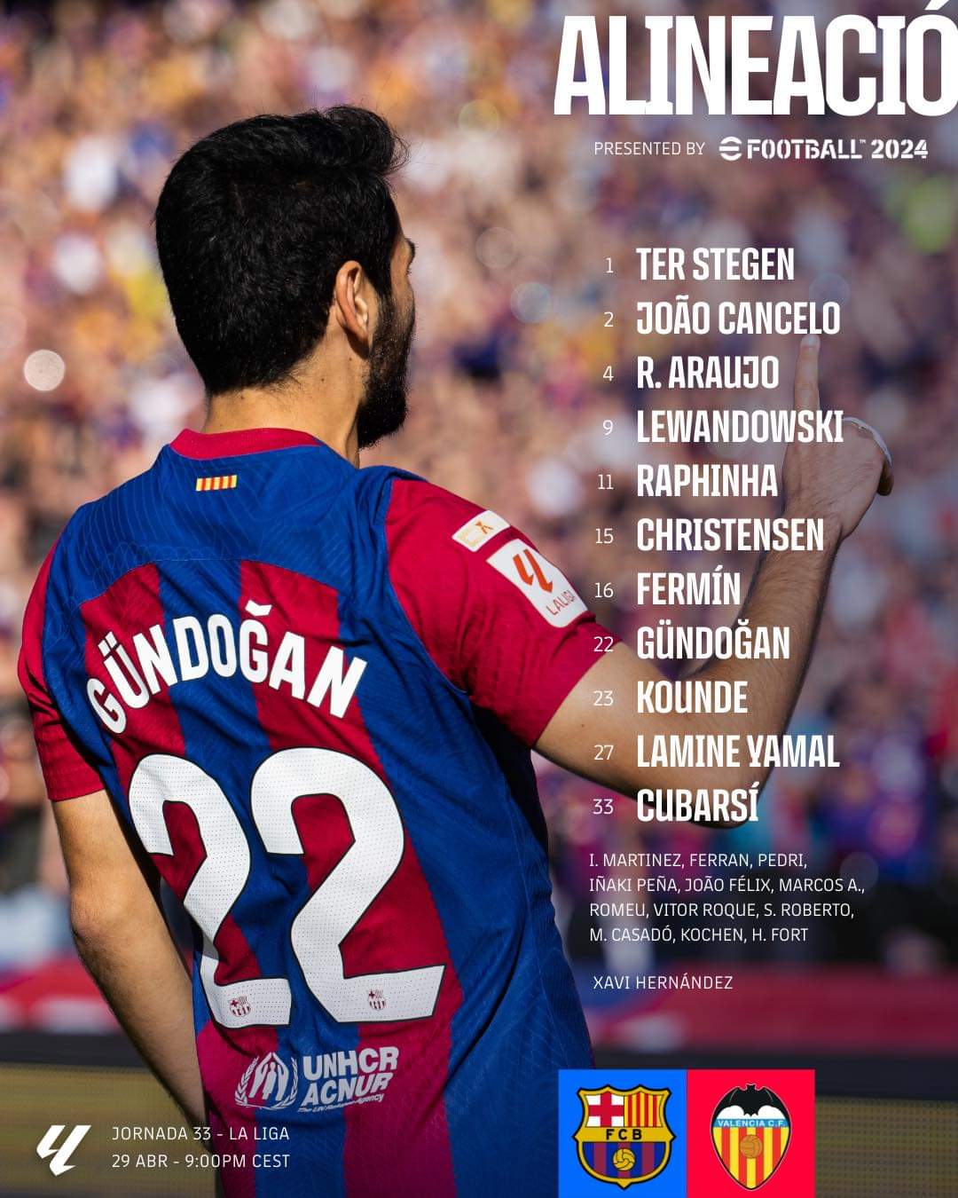 تشافي يعلن تشكيلة برشلونة للقاء فالنسيا