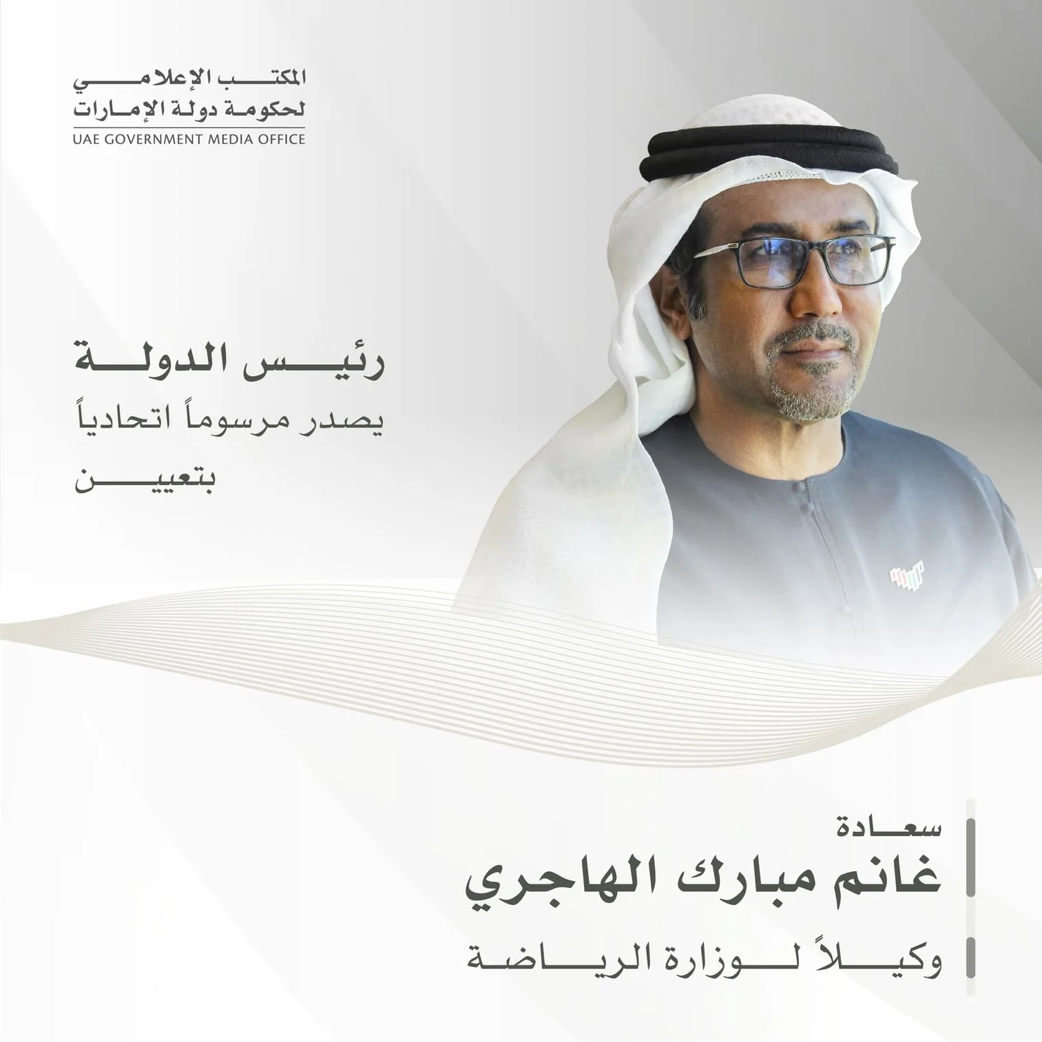 رئيس الدولة يصدر مرسوماً اتحادياً بتعيين غانم مبارك الهاجري وكيلاً لوزارة الرياضة
