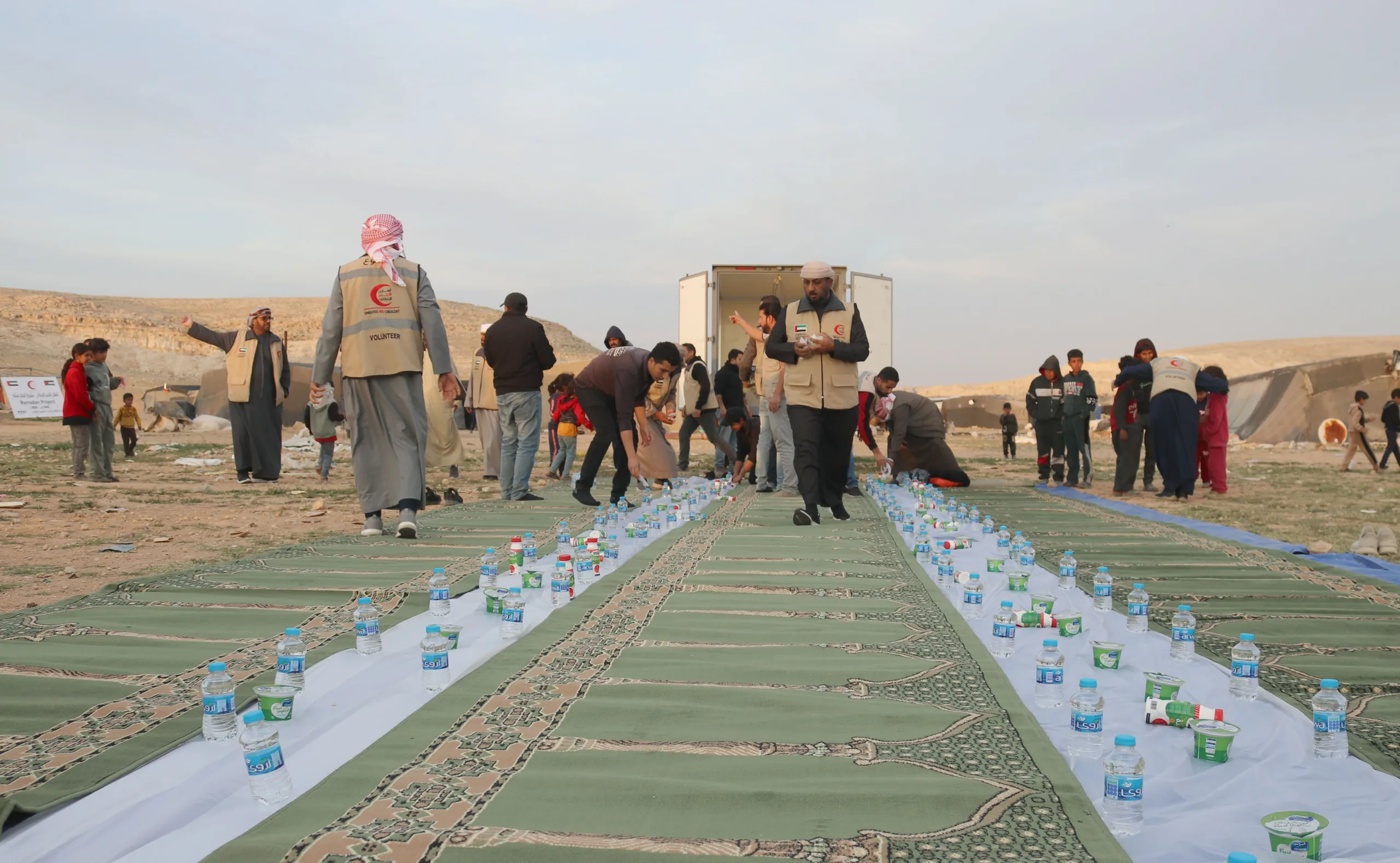 “الهلال الأحمر ” ينفذ إفطار صائم لقاطني الخيم العشوائية القريبة من المخيم الإماراتي الأردني